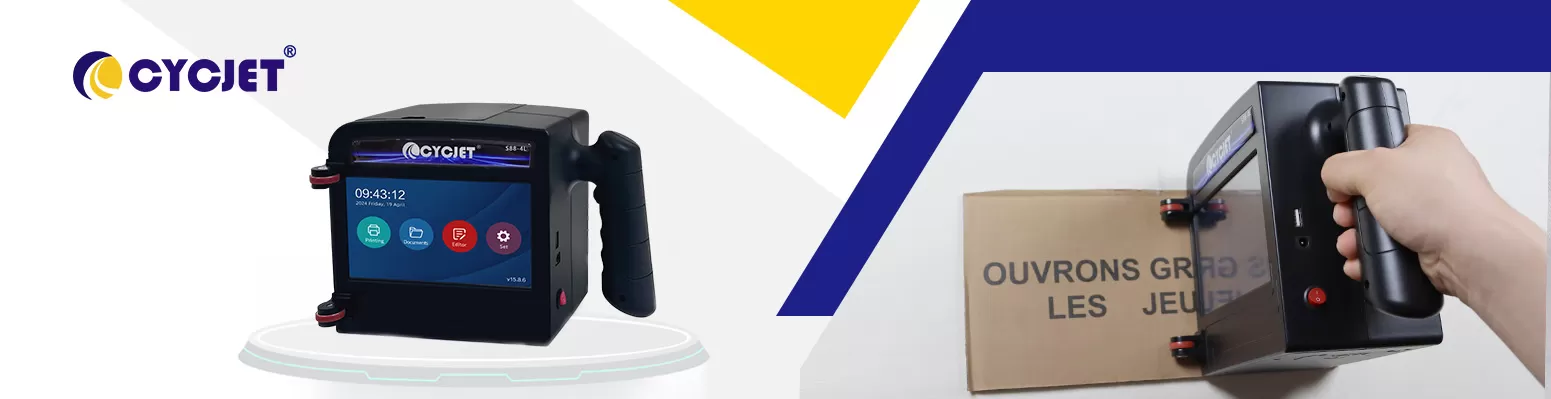 CYCJET S88-4L Large-format Handheld Inkjet Printer works with four ink cartridges at a time and can achieve a max of 100mm print height with four printheads combination. Built-in intelligent Linux operating system, simple and intuitive touch surface based on the symbol, easier to operate, users can grasp it well within 5 seconds. It can print not only text, batch number, production date, and expiry date, but also logos, QR codes, and bar codes. All customized contents or logos can be imported to the printer