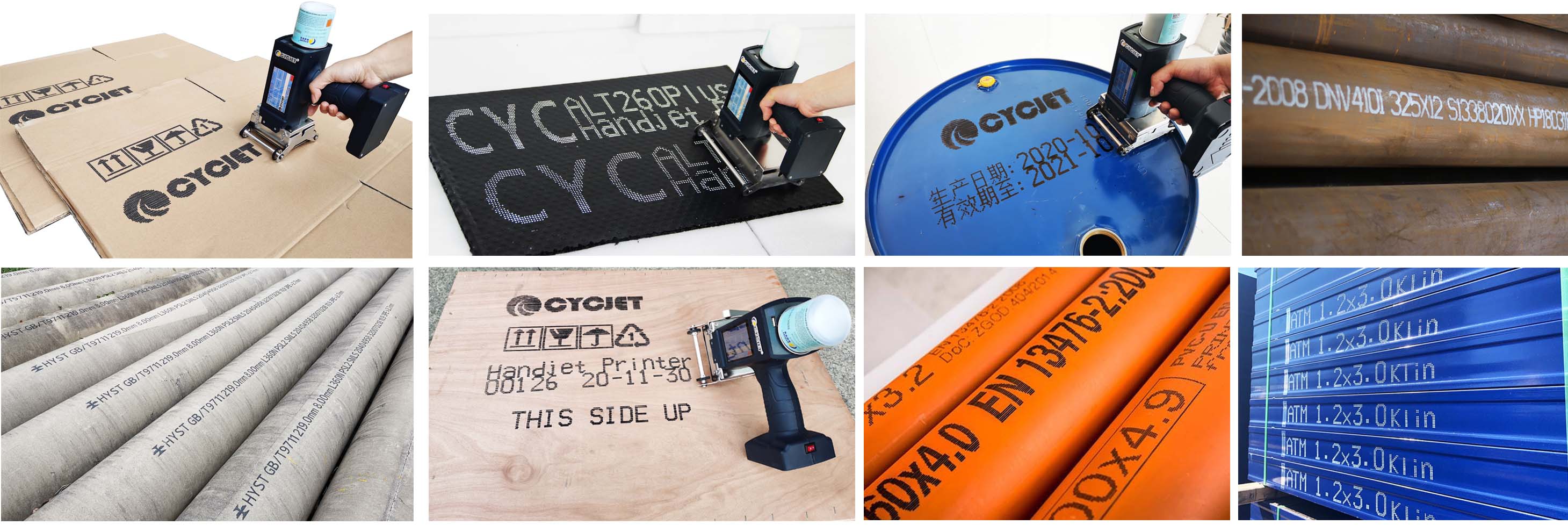 CYCJET DOD Handheld Inkjet Printer, 16 dot-matrix, 24 dot-matrix, 40 dot-matrix optional. Small & Portable for large character printing; DOD Technology; 40 dot-matrix supporting QRcode Printying; Max 62mm character height printing; Touch Screen Operation;